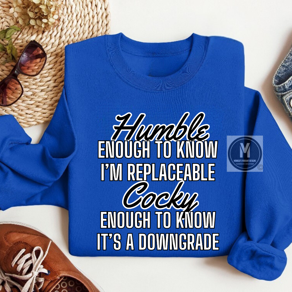 This unisex poly-cotton shirt and sweatshirt blend wit with confidence. Featuring the bold statement, “Humble enough to know I’m replaceable, cocky enough to know it’s a downgrade,” it’s perfect for those who balance humility with undeniable self-assurance. Comfortable, durable, and stylish, this versatile fit makes a confident impression wherever you go.