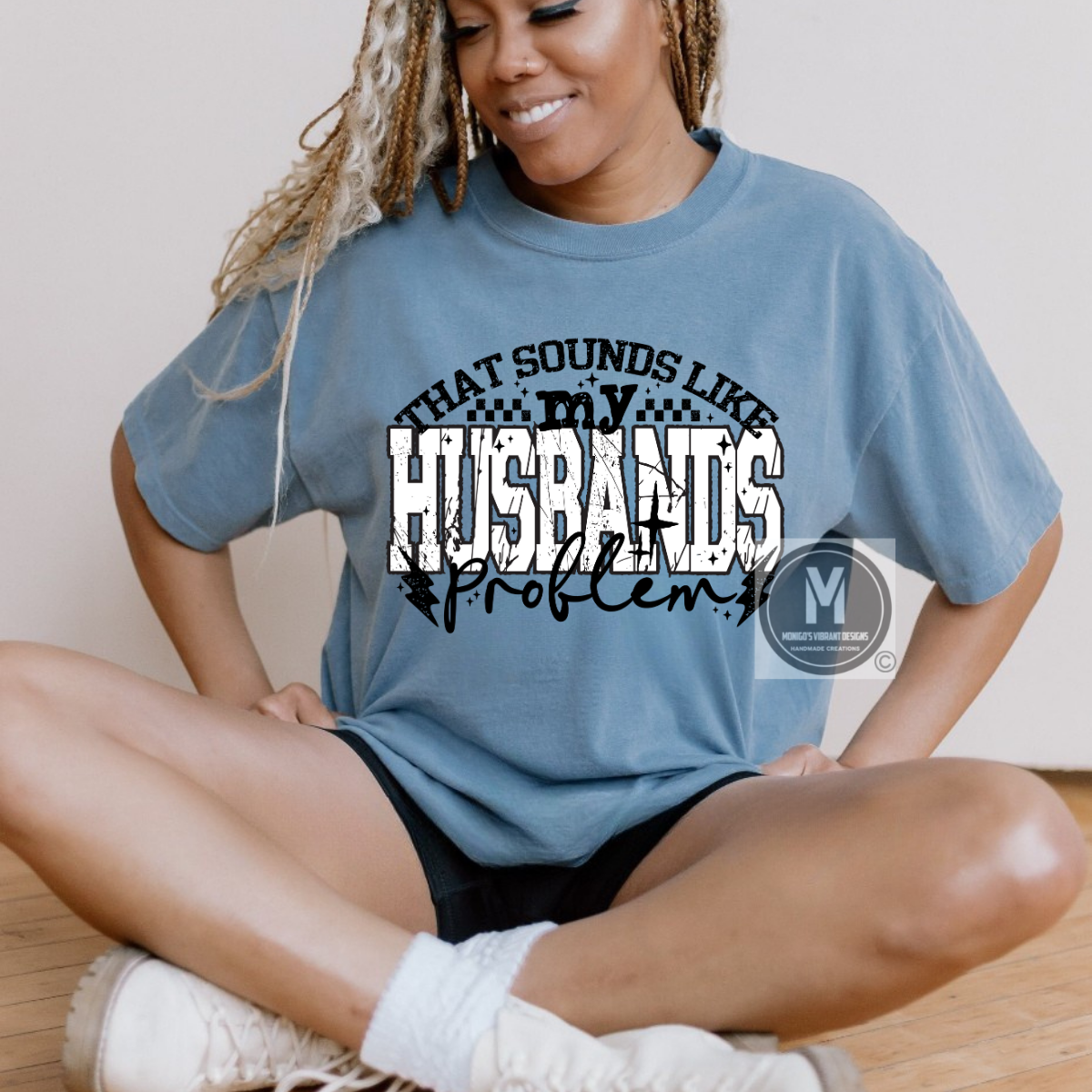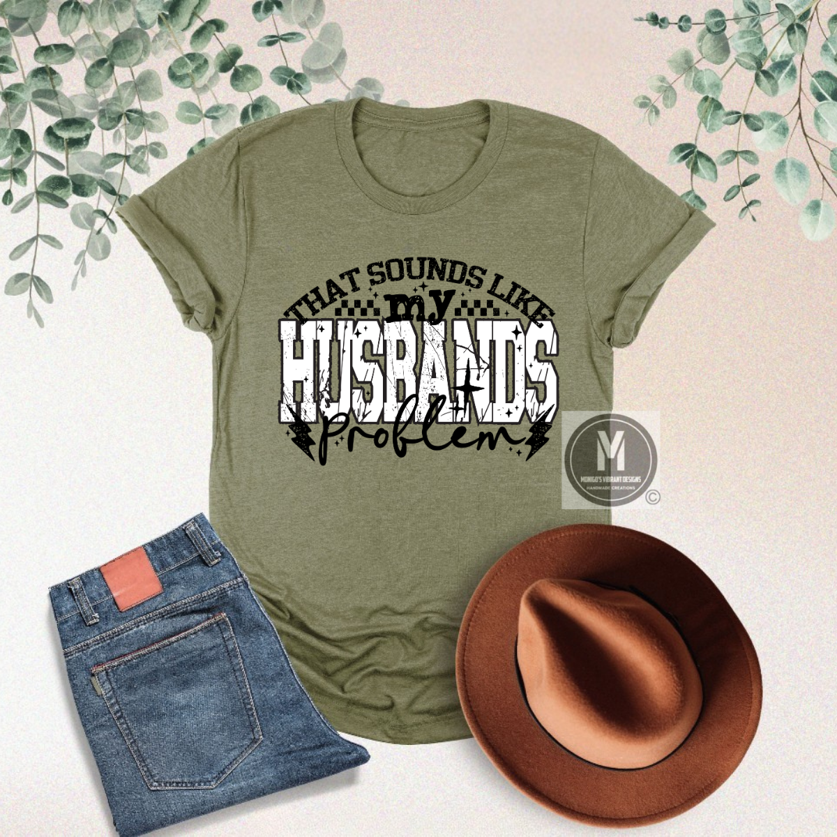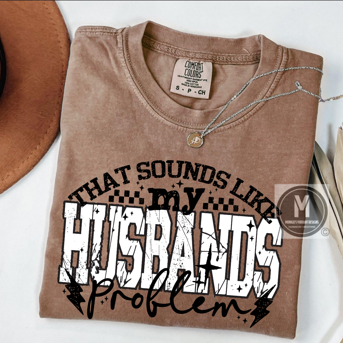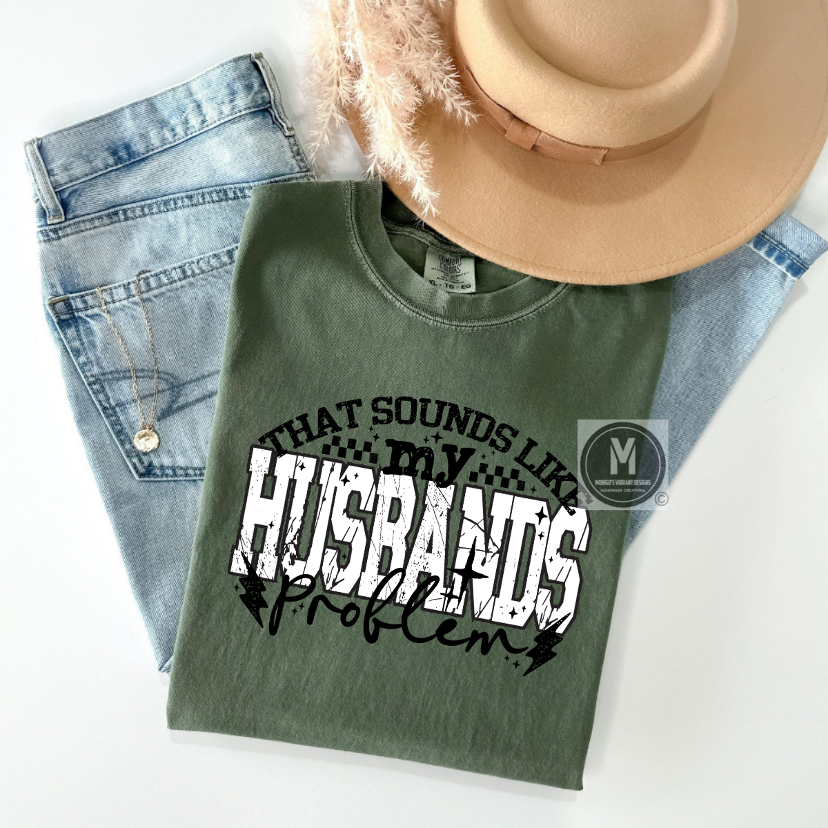 Sassy, funny, and totally relatable — this shirt says what you’re thinking. Our “That Sounds Like My Husband’s Problem” tee is perfect for the woman who knows when to let things roll right off her shoulders. Unisex tee; Brands- Bella canvas poly/cotton blend and Comfort colors 100% cotton